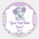 Sticker Cercle étiquette avec joli Eléphant Girl dans les couleurs violet et rouge