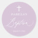 Autocollant rond de baptême de fille à croix blanche violette