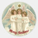 Jolie image vintage de trois anges chantant tirée d'un livre de musique, est présentée sur cet autocollant rond pour Noël. Avec le message "Joyeux Noël", il peut être utilisé pour ces envois spéciaux, la décoration et le scrapbooking et plus encore pour Noël !