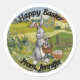 Cet autocollant mignon est parfait pour être placé sur une carte ou un cadeau pour Pâques. Le design comprend un lapin gris avec un panier sur un fond fantaisiste. La personnalisation est disponible pour le nom de votre choix. Joyeuses Pâques !