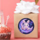 Cet autocollant rond de Pâques représentant un lapin céleste mignon présente un adorable lapin kawaii assis sur une lune lumineuse entourée d'étoiles scintillantes. Conçu avec une esthétique rêveuse, cet autocollant mélange une illustration de lapin douce avec des éléments célestes, ce qui le rend parfait pour les cadeaux de Pâques, la décoration printanière et l'utilisation quotidienne.