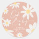 Cet autocollant rond fait partie de la collection de baby shower Floral Daisy caractérisée par un style rétro avec des fleurs de pâquerette aquarelles et une couleur rose parfaite pour l'anniversaire d'une fille ou une baby shower. Avec d'innombrables options de personnalisation, ce modèle est facilement personnalisable pour tous les événements et facile à assortir à vos couleurs.