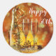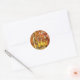 Autocollant rond présenté dans une impression de photo de fête festive pour votre 50e anniversaire.