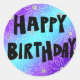 Autocollant Rond Joyeux Anniversaire avec Fleurs