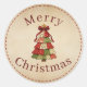 Autocollant rond Joyeux Noël Patchwork Quilt