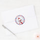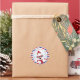 Emballez votre envoi ou votre cadeau de Noël avec un joli sceau rond qui présente les bordures d'une enveloppe de courrier aérien en bleu foncé et rouge. Il comporte une illustration de Rudolph le renne dans une écharpe confortable et un chapeau d'hiver. Le bureau de poste du pôle Nord utilise toujours le courrier aérien car tout le courrier de Noël doit arriver à temps. Le texte personnalisable indique PÔLE NORD - LIVRAISON EXPRESS - COURRIER DE PÈRE NOËL