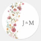 Sticker rond Mariage classique. Cet autocollant de mariage élégant et élégant présente de magnifiques fleurs sauvages d'aquarelle peints à la main. Recherchez les éléments correspondants dans la collection White Fleur sauvage Dreams.
