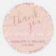 Faites votre papeterie mariage et favorise vraiment la vôtre avec notre Sticker rond Merci Mariage Parties scintillant rose. Cet autocollant rond de remerciement chic présente une élégante parties scintillant d'or rose rose rose rose ainsi qu'une typographie de script moderne et élégant. Assurez-vous de personnaliser le texte pour en faire le vôtre. Parfait pour les événements mariage et mariages. Si vous avez besoin d'aide pour modifier cette conception ou si vous avez besoin de produits de coordination conçus pour votre événement mariage ou mariage, veuillez nous envoyer un message à l'adresse daymakerzazzle@gmail.com