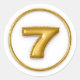 Ajoutez une touche festive à votre célébration avec cet autocollant rond numéro 7 en ballon doré. Conçu avec un aspect de feuille métallisée fausse, le « 7 » doré est stylisé pour ressembler à un ballon de fête gonflé, encadré dans une bordure dorée ronde pour plus d'élégance.