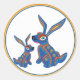 Une bordure colorée et assortie entoure deux adorables lapins d'art populaire qui regardent en arrière sur leurs épaules. Ces autocollants sont parfaits pour sceller des sacs et des boîtes cadeaux ou attacher des rubans festifs aux emballages.