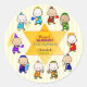 Approprié pour tout séjour juif (sauf les jours rapides comme Yom Kippour), ce design présente une grande étoile de David avec les noms de plusieurs jours juifs dans le centre. Autour de l'Etoile sont stylisés, enfants colorés dans le vêtement de vacances approprié. Festif et amusant.