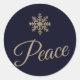 Ajoutez une touche d'élégance à vos envois et colis de vacances avec cet autocollant rond magnifique. Le fond bleu marine profond est orné d'un flocon de neige en or brossé en haut, symbolisant la beauté sereine de la saison. En dessous, le mot "Paix" est délicatement écrit dans une police de caractères classique, capturant l'esprit de tranquillité et de bonne volonté. Parfait pour ajouter une touche sincère à vos vœux de fête, ces autocollants sont un moyen charmant de répandre la joie et la chaleur pendant cette période des fêtes. Utilisez-les pour sceller des enveloppes, décorer du papier-cadeau ou orner des faveurs de vacances. Élevez votre présentation des fêtes avec ce design captivant et significatif.