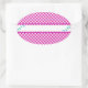 Sticker Oval Arrière - plan rose En vichy & Fleurs Bleues. Arrière - plan prêt pour vous à ajouter vos propres images et texte.