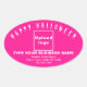 Joyeux Halloween ! Un des jours fériés de l'année pour annoncer votre entreprise. D'ailleurs, cherchez-vous un autocollant que vous pouvez utiliser comme matériel marketing pour annoncer votre entreprise, pour promouvoir votre marque auprès des clients ou pour utiliser comme étiquette de produit cet Halloween? S'il vous plaît voir cet autocollant rose ovale avec salutation Halloween. Il se pourrait que tu l'aimes. La couleur de la police est blanche. Customisez-le et utilisez-le pour sensibiliser la marque. Pour customiser cet autocollant, téléchargez votre logo d'entreprise, tapez votre nom d'entreprise ou d'entreprise, votre adresse et votre numéro de téléphone, puis vérifiez l'apparence. Si l'apparence vous plaît, vous pouvez passer votre commande maintenant. Si vous avez besoin de redimensionner et déplacer le logo et les textes pour tenir sur cet autocollant ou sur d'autres formes et tailles que vous choisirez, s'il vous plaît changer dans l'outil de conception. Vous pouvez également effectuer d'autres modifications selon vos préférences dans l'outil de conception, comme changer la couleur de l'autocollant, la couleur de police et le style de police.