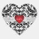 Simplement pourtant Merci rouge élégant de monogramme de coeur de damassé noire et blanche épousant l'autocollant. Parfait ! Voir les styles plus grands à TheInspirededge.com