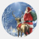 Célébrez la période la plus merveilleuse de l'année et personnalisez vos cadeaux de Noël pendant la période des fêtes de la manière la plus pratique avec des autocollants de Noël. Comportant une œuvre d'art époustouflante de Dona Gelsinger, le Père Noël debout avec un renne et appréciant la magie d'une nuit étoilée, ce bel autocollant est parfait pour ajouter une touche personnalisée à vos cadeaux, décorer des enveloppes, étiqueter des cadeaux ou de nombreuses autres façons.