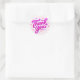 Exprimez votre gratitude avec style grâce à cet autocollant rose scintillant "Merci". Entouré de cœurs pastel, il est parfait pour sceller les enveloppes, les sacs cadeaux ou les faveurs de fête avec une touche sincère.