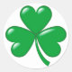 Un autocollant blanc avec l'illustration d'un shamrock, ou trèfle de houblon, symbole de l'Irlande et de la Saint Patrick (une légende dit que le saint l'a utilisé pour expliquer la Sainte Trinité). Choix de taille.
