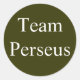 Un autocollant vert olive "Team Perseus". Perseus était un héros grec ancien. Il fut le fondateur légendaire de Mycenae, qui tua Medusa (cheveux de serpent) et secourut la princesse Andromeda d'un monstre marin avant de l'épouser.