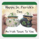 Jolie image de deux personnes trinquant l'une avec l'autre, est présentée sur cet autocollant carré pour la Saint-Patrick. Avec le message, "Joyeuse Saint-Patrick, Un Toast Irlandais Pour Vous". Un excellent autocollant à utiliser pour cet envoi spécial, la décoration, le scrapbooking et plus encore, pour la fête irlandaise !
