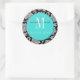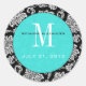 Autocollant Turquoise de Mariage de monogramme Dam
