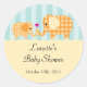Baby shower unisex doux et moderne cadeau ou favoriser autocollant. Présente maman et bébé éléphant face à l'autre avec un coeur pour symboliser leur amour. Recherchez l'invitation correspondante, timbre postal, étiquette de adresse et carte de remerciements. Cette conception est disponible en d'autres combinaisons de couleurs.