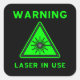 Avertissement - laser en service - autocollant noir avec le signe vert clair de lettrage et d'alerte laser.