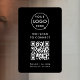 Cette signalétique adhésive noire pour vitres en vinyle fournit un moyen propre et moderne pour les clients ou les invités d'accéder à votre réseau wifi instantanément. Le design comporte une zone de code QR central qui peut être liée à vos détails wifi afin que les utilisateurs puissent scanner pour se connecter sans saisir de mot de passe. Au-dessus, vous pouvez télécharger votre logo d'entreprise et en dessous, entrer votre nom de réseau et toutes les instructions personnalisées qui conviennent à vos besoins. La mise en page minimaliste garde tout lisible, ce qui fonctionne bien pour les cafés, les salons, les studios, les bureaux, les propriétés de location, les pop-up ou les lieux d'événements. Parce que le modèle est entièrement modifiable, il s'adapte facilement aux mises à jour de la marque ou aux nouvelles informations wifi. Une solution pratique et soignée qui aide à rationaliser l'accès des clients et améliore votre expérience en personne.