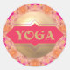 Le mot "Yoga" entouré de couleurs or, orange et rose