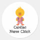 Une infirmière cardiaque mignonne Chick en gommes roses avec un stylo dans sa poche et un stéthoscope autour du cou sur t-shirts, vêtements, papeterie et plus de marchandises et vêtements d'infirmière. Ces articles font un cadeau de fin d'études en soins infirmiers mignon et amusant présent ou en soins infirmiers cardiaques pour une infirmière autorisée. Studios, LLC.