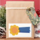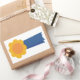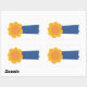 Peinture d'un ruban primé de bleu et d'orange, imprimé sur des autocollants. Le dessus a une fleur de type orange, avec deux rubans bleus royaux suspendus.