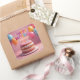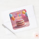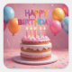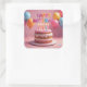 Un gâteau d'anniversaire avec des bougies vacillantes, des ballons colorés, des confettis et un panneau JOYEUX ANNIVERSAIRE couvrent cet autocollant de fête.