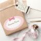Des rayures roses et un arc donnent ces autocollants de style féminin et rétro. Customisez cet autocollant pour répondre à vos besoins. Utilisez ces autocollants pour une entreprise, boulangerie, boutique, artisanat, emballage, emballages, étiquettes cadeaux, étiquettes, invitations, etc... Le design est de l'art original.