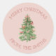Ajoutez une touche finale festive à vos cadeaux et cartes de vacances avec ces autocollants fantaisistes d'arbre de Noël à l'aquarelle. Présentant un arbre peint à la main orné de rubans roses sur un fond rose pâle doux, ces étiquettes rondes charmantes apportent une esthétique chaleureuse et joyeuse à la saison.