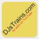 Des autocollants carrés à l'aide du logo DJsTrains.com.