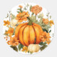 Sticker est montré dans le rond avec une belle impression d'aquarelle citrouille d'automne. Customisez cet objet ou achetez tel quel. Image sous licence