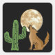 Jolie conception de collier de coyote hurlant drôle a la lune et un cactus dans l'arrière - plan. Peut également ajouter du texte personnalisé lors de la commande.