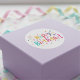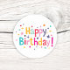 Cette conception présente un message "Joyeux Anniversaire !" dans un style amusant et nostalgique en utilisant une variété de couleurs vives. Les lettres sont entourées d'une dispersion ludique de points et d'étoiles colorés qui lui donnent un look de fête classique à l'ancienne. Les formes sarcelles, roses, orange et violettes brillantes se détachent clairement sur le fond blanc uni. Il a une sensation simple et festive qui vous rappelle les célébrations de l'enfance et les confettis lancés en l'air. Ces étiquettes circulaires sont un moyen rapide d'ajouter une touche de couleur et un message joyeux à n'importe quelle carte ou sac-cadeau.