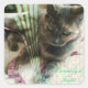 Un adorable chat tortue aux yeux verts et son ruban de mesure de jouet avec la phrase "Possédé par une Tortie"- Un autocollant délicieux pour toute collection d'autocollants - ou pour tout amoureux des chats!