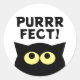 Autocollants de chat noir amusant avec des guillemets personnalisés. Joli design avec un chic de dessin animé et une citation humoristique. Purrfect ! Autocollants amusants pour amoureux des animaux, propriétaire de chat, personne de chat, maman de chat, amoureux des animaux, etc. Silhouette de chat drôle avec de grands yeux jaunes.