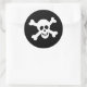 Un autocollant de crâne et d'os croisés noir et blanc heureux. Une feuille de 6 grands autocollants est parfaite pour décorer les enveloppes de vos cartes de vœux d'Halloween, mais les autocollants peuvent également être imprimés dans une taille plus petite.