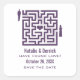 Des autocollants de date de sauvegarde de Labyrinthe d'Amour originaux et amusants en violet représentant un labyrinthe avec un cœur au milieu et une mariée et un marié de chaque côté, attendant de se trouver et de s'aimer. Ce design doux est un choix charmant pour annoncer votre mariage à venir ! Facile à personnaliser, il suffit de remplir les détails de votre mariage dans les champs de texte fournis. Cliquez sur le bouton "Personnaliser" pour trouver des options de personnalisation supplémentaires.