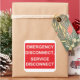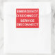 Une feuille de six autocollants de déconnexion d'urgence, déconnexion de service pour les électriciens afin de satisfaire aux exigences de l'article 230.85(E)(1) et (2) du Code électrique national 2023.