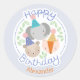 Une conception adorable d'autocollant comportant l'éléphant, l'ours et le renard mignons avec des casquettes d'anniversaire. Les mots "joyeux anniversaire" pré-sont imprimés. (<a href='http://www.freepik.com/free-vector/birthday-background-with-animals_1285445.htm'>Conçu par Freepik</a>). <br/><br/>Il est facile customiser l'autocollant avec vos mots, police et couleur de police<br/><br/>Pas exactement que recherchez-vous ? Tous nos produits peuvent être conçus en fonction du client pour répondre à vos besoins à aucun supplément<br/><br/>Contactez-simplement nous chez heartfelthelper@gmail.com. <br/><br/>Produits coordonnés disponibles : Demandez-juste nous !