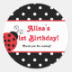 Autocollants de fête à pois coccinelle rouge. Personnalisez avec n'importe quel texte.