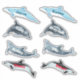 Autocollants en forme de dauphin avec modèles de noms pour une fête d'enfants. Créez des autocollants de noms à utiliser sur des articles en papier, des sacs de fêtes ou des réglages de table pour un anniversaire sur le thème du dauphin. Ajoutez chaque nom sur une variété d'images de dauphins qui viennent sur des feuilles de différentes tailles. La taille de l'autocollant sera corrélée à la taille de la feuille commandée.