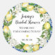 Conçus pour aller avec la collection Citron de Jenny, cet autocollant de fête de mariage présente un citron jaune et une couronne florale blanche. Il y a une touche de carreaux bleus autour du bord de l'autocollant rond. Le nom de la mariée et la fête de mariage suivent, écrits dans une police de caractères moderne et tendance. La date complète le texte. Un petit cœur jaune ajoute une touche de romance. Tout le texte est modifiable.