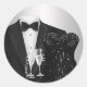 Autocollant élégant smoking et robe noire avec verres à champagne. Cet autocollant beau et noir de smoking est facilement personnalisable pour votre événement en choisissant simplement le bouton "Personnalisez-le !" pour commencer à ajouter votre texte, le style de police, la taille et la couleur de la police, et le libellé. Vous pouvez également le laisser tel quel et il fonctionne bien comme un sceau d'enveloppe et une étiquette de cadeau de fête. Veuillez noter que toutes les conceptions de cartes et d'invitations que vous trouverez sur Zazzle sont des graphiques imprimés sans véritables bijoux, rubans, reliefs, gaufrures ou pièces ou éléments ajoutés.