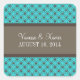 Stickers de mariage Fancy Lattice tendance et chic avec un cercle élégant et un motif clouté en diamant sur un arrière - plan turquoise dynamique avec une large bordure brune bicolore. Ces stickers de mariage élégants sont parfaits pour un mariage moderne. Facile à customiser, il suffit d'ajouter les détails de votre mariage dans les champs de texte fournis. Cliquez sur "Customiser" pour trouver d'autres options de personnalisation.