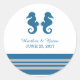 Stickers de Mariage de Cheval de mer élégant et classique avec une paire de hippocampes simples et une gamme de rayures en bleu marine foncé et gris. Ces autocollants sur le thème de la plage nautique peuvent être facilement customisés avec vos détails mariages. Pour plus d'options de personnalisation, cliquez sur le bouton Customiser.